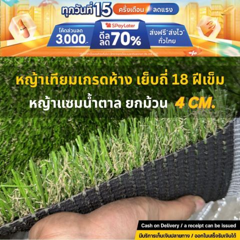 [ยกม้วน] หญ้าเทียมพรีเมี่ยม 18 ฝีเข็ม ทอแบบ 3/8 หนาแน่นพิเศษ ไม่เห็นพื้นหลัง รับประกัน 5 ปี