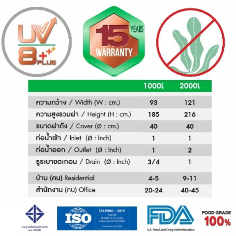 ความจุ: 1000 / 2000 ลิตร (ตามตัวเลือก)