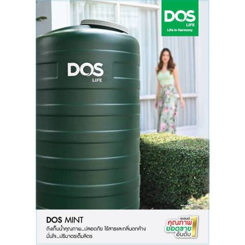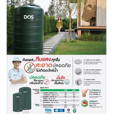 [ใหม่!] แท้งค์น้ำ/ถังน้ำ DOS รุ่น MINT สีเขียว ทางเลือกคุ้มค่าเพื่อบ้านยุคใหม่ ดีไซน์สวย สีไม่ซีดจาง เก็บน้ำสะอาดปลอดภัยด้วยวัสดุ Food Grade 100% ไม่ผสมวัสดุรีไซเคิล พร้อมมาตรฐานการผลิตระดับโลก และการรับประกันยาวนานถึง 15 ปี ในราคา 5,690.00 บาท (ส่งฟรีตามเงื่อนไข)