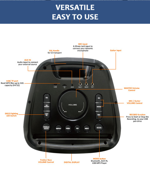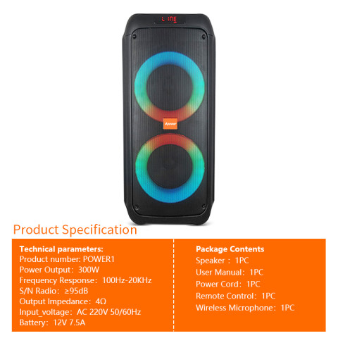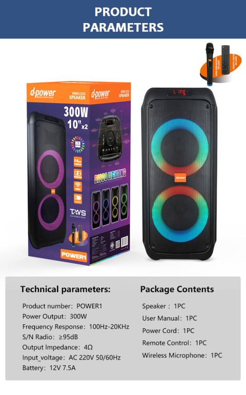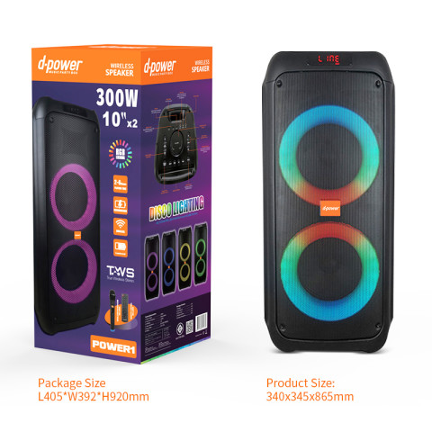 เสียงดัง แรง เบสแน่น ด้วยกำลังขับ 300W (RMS) และดอกลำโพง 10 นิ้ว 2 ดอก เหมาะกับปาร์ตี้ งานอีเวนต์ และคาราโอเกะ