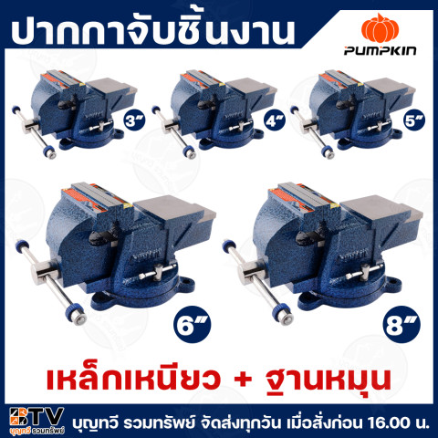 PUMPKIN ปากกาจับชิ้นงาน เหล็กเหนียว + ฐานหมุน (ขนาด 8 นิ้ว รุ่น 53108) คืออุปกรณ์จับยึดชิ้นงานที่ช่วยให้การทำงานช่าง “แน่น ละเอียด และปลอดภัย” เหมาะทั้งงานไม้ งานโลหะ งานซ่อมบำรุง และงาน DIY ที่ต้องการความมั่นคงระหว่างการตัด เจาะ ตะไบ ขัด หรือประกอบชิ้นงาน โดยมาพร้อมฐานหมุนเพื่อปรับมุมทำงานได้สะดวกยิ่งขึ้น