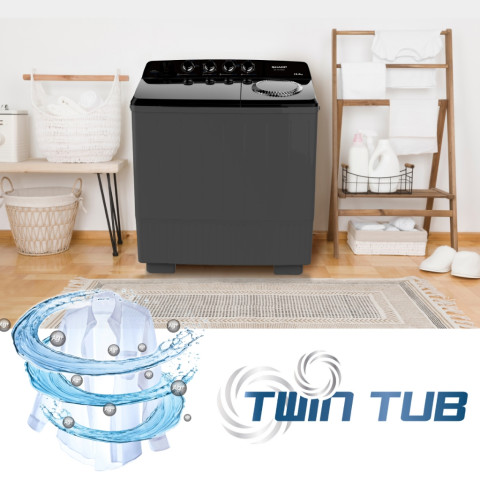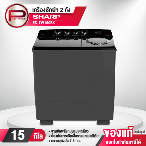 SHARP เครื่องซักผ้า 2 ถัง รุ่น ES-TW150BK (15 กก.) สีดำ ทางเลือกคุ้มค่าสำหรับครอบครัวที่ต้องการซักผ้าได้จุใจ พร้อมถังปั่นแห้งแยกใช้งานสะดวก ซักไว ปั่นหมาดทันใจ และมั่นใจด้วยรับประกันมอเตอร์นาน 10 ปี ในราคา 7,292.70 บาท