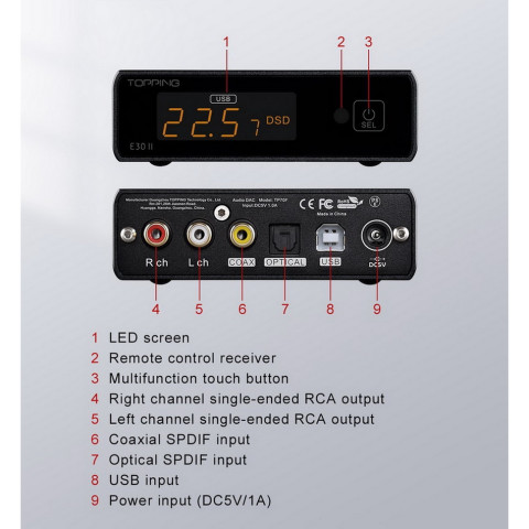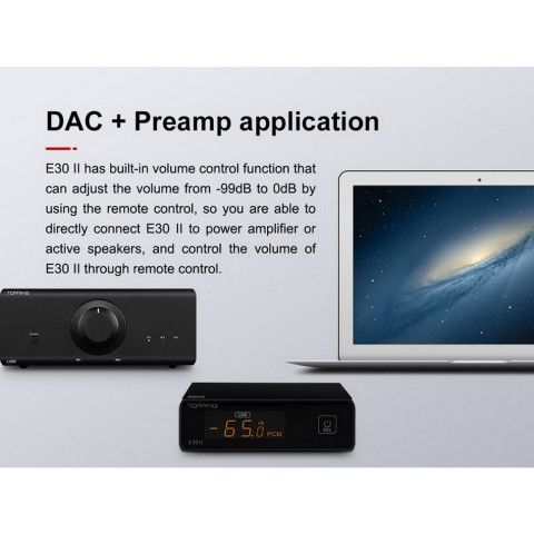 Topping E30ii DAC ตัวถอดรหัสเสียงแบบตั้งโต๊ะเกรดออดิโอไฟล์ อัปเกรดคุณภาพเสียงจากคอมพิวเตอร์/ทีวี/เครื่องเล่นต่างๆ ให้ใส เคลียร์ รายละเอียดชัด และมิติเสียงเป็นธรรมชาติมากขึ้น ด้วยชิป DAC รุ่นยอดนิยม AK4493S จำนวน 2 ตัว ในบอดี้ขนาดกะทัดรัด เหมาะทั้งการฟังเพลงจริงจังและจัดชุดเครื่องเสียงบนโต๊ะทำงาน