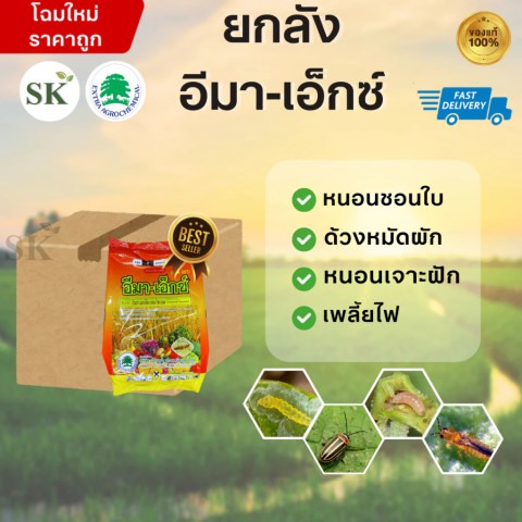 *สั่งทีล่ะ1ลัง* [ยกลัง 25 ถุง] อีมา-เอ็กซ์ อีมาเมกตินเบนโซเอต 5% WG ขนาด 1 กิโลกรัม ในราคา 6,050.00 บาท เหมาะสำหรับเกษตรกรที่ต้องการ “คุมหนอน–คุมแมลง” แบบมั่นใจ ออกฤทธิ์ได้ทั้ง สัมผัส และ ดูดซึม ช่วยให้แมลงตายไว ลดความเสียหายของผลผลิต และยังเป็น ยาเย็น สามารถ ฉีดผ่าดอกได้ (เมื่อใช้ตามคำแนะนำ)