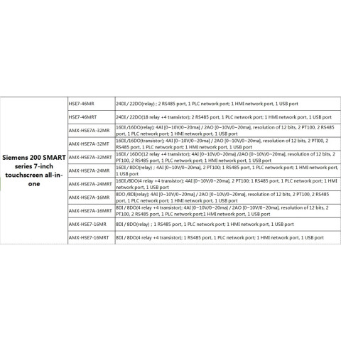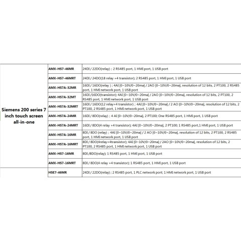 AMX-HM7A-16MRT: 8DI / 8DO (ทรานซิสเตอร์ 4 จุด + 4 จุด), 4AI / 2AO, 2 PT100, RS485 x1, RS232 x1, พอร์ตเครือข่าย HMI x1, USB x1