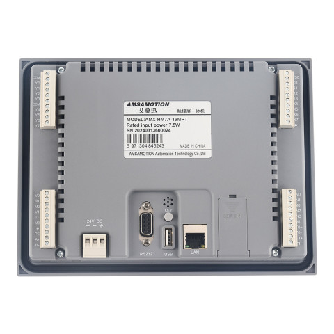AMX-HM7-16MR: 8DI / 8DO (รีเลย์), RS232 x1, พอร์ตเครือข่าย HMI x1, USB x1