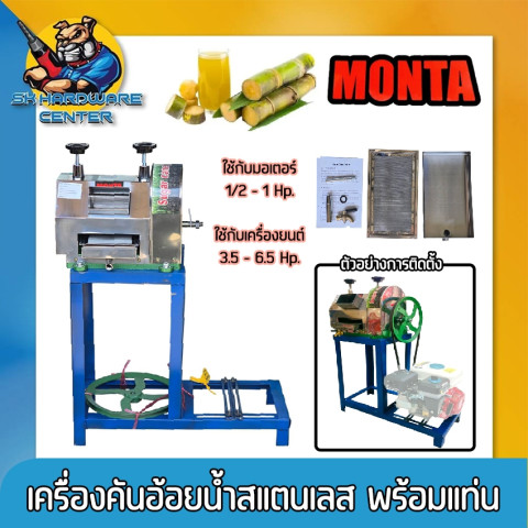 เครื่องคันอ้อยน้ำสแตนเลส พร้อมแท่น MONTA รุ่น SY-250A ตัวช่วยทำ “น้ำอ้อยคั้นสด” ให้ได้น้ำเยอะ ใช้งานคล่อง เหมาะทั้งร้านเครื่องดื่ม รถเข็นขายน้ำอ้อย งานอีเวนต์ หรือผู้ที่ต้องการทำขายแบบจริงจัง สามารถติดตั้งใช้งานได้ทั้งกับ มอเตอร์ไฟฟ้า หรือ เครื่องยนต์ เพิ่มความยืดหยุ่นตามพื้นที่และรูปแบบการใช้งาน