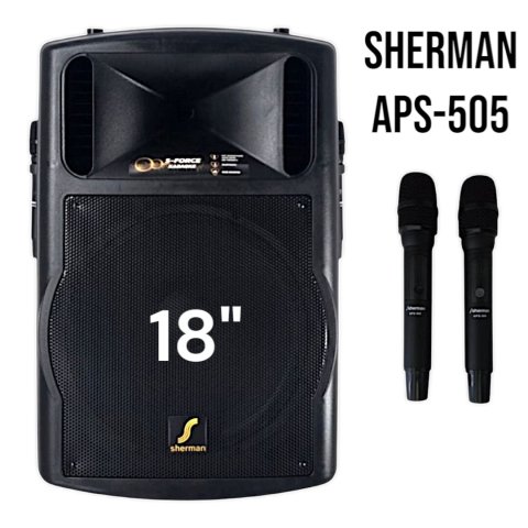 SHERMAN APS-505 ลำโพงเคลื่อนที่ บลูทูธ ล้อลาก ขนาด 18 นิ้ว กำลังขับสูงสุด 180W