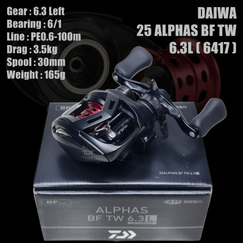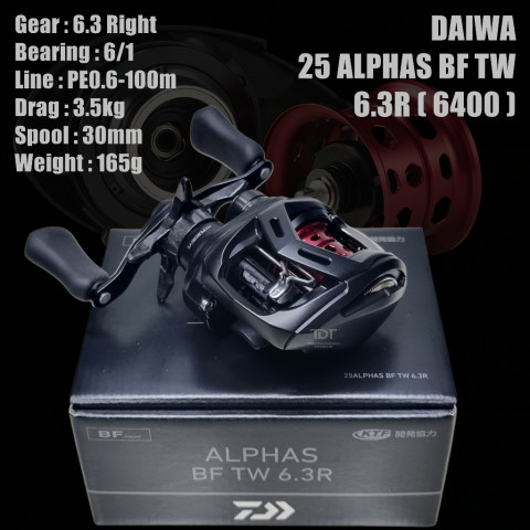 DAIWA 25 ALPHAS BF TW รอกเบทเหยื่อเบาสาย JDM ที่สาย BFS ต้องมี ให้การเหวี่ยงเหยื่อขนาดเล็กทำได้ง่าย คุมสปูลลื่น ไหลเนียน เหมาะทั้งงานช่อน กะพง และการตกปลาด้วยเหยื่อปลอมในหลายสไตล์ มีให้เลือกครบทั้งอัตราทด 6.3 และ 8.5 ทั้งมือซ้าย/มือขวา