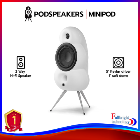 Podspeakers MiniPod Bookshelf Speakers ลำโพงวางหิ้งดีไซน์โดดเด่น ขนาดกะทัดรัดแต่ให้พลังเสียงเต็มอิ่ม ด้วยโครงสร้างลำโพง 2 ทาง (2-Way) พร้อมดอกลำโพงขนาด 5 นิ้ว ให้รายละเอียดเสียงร้องชัดเจน เสียงแหลมใส และมิติเสียงที่เป็นธรรมชาติ เหมาะทั้งฟังเพลง ดูหนัง หรือใช้งานเป็นลำโพงคู่หลักในห้องนั่งเล่น ห้องทำงาน และคอนโด