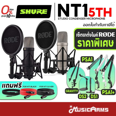 [ใส่โค้ดลด1000บ.] Rode NT1 5th Generation / Rode NT1-A ชุดไมโครโฟนบันทึกเสียง (Mic+Gravity GMSTBA01, NT1 5th Black)