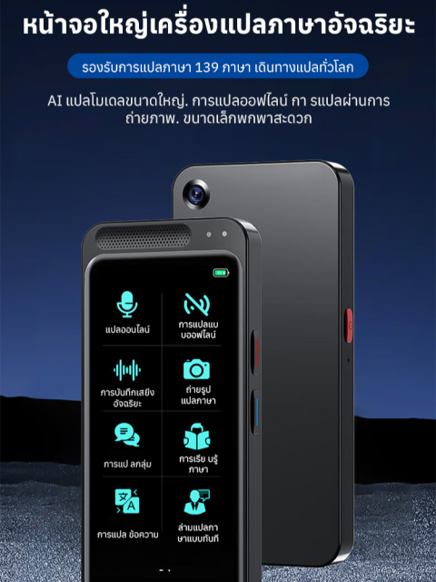 เครื่องแปลภาษาอัจฉริยะ 139 เครื่อง + นักแปลภาพถ่าย AI Translator ตัวช่วยสื่อสารที่ทำให้การเดินทาง ทำงาน และเรียนรู้ภาษาเป็นเรื่องง่าย แปลได้รวดเร็ว ใช้งานสะดวก รองรับทั้ง Wi‑Fi และ โหมดออฟไลน์ ตอบโจทย์ทุกสถานการณ์ ไม่ว่าจะอยู่ต่างประเทศ ในพื้นที่สัญญาณอ่อน หรือใช้งานแบบเร่งด่วน