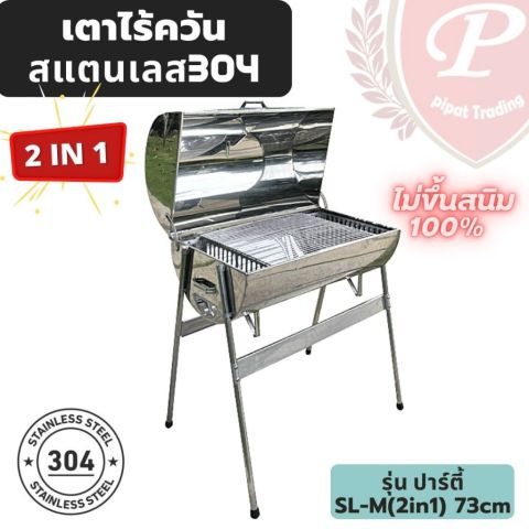 เตาสแตนเลสไร้ควัน (2in1) รุ่นปาร์ตี้ 73cm 115ลิตร เตาเดียวจบทั้ง ย่าง/ปิ้ง/อบ ด้วยฝาปิด เพิ่มความหอมและช่วยกักความร้อนให้อาหารสุกไว เหมาะมากสำหรับงานปาร์ตี้ พูลวิลล่า ร้านค้าเล็ก หรือครอบครัวใหญ่ 6–10 คน ตัวเตาผลิตจาก สแตนเลส 304 แท้เกรดเครื่องครัว ผิวมันวาว ไม่ขึ้นสนิม แข็งแรงทนทาน งานเชื่อมประกอบโดยช่างไทยผู้ชำนาญ