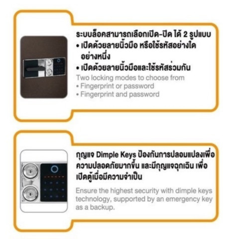 ระบบล็อกแน่นหนา 3 ชั้น: ลายนิ้วมือ 1 ชุด / รหัสดิจิตอล 1 ชุด / กุญแจ 1 ชุด