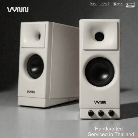 VYNN Flow ลำโพงคอม 2.0 ลำโพงบลูทูธ Handcrafted รองรับ aptX HD คือเดสก์ท็อปสปีคเกอร์ที่ออกแบบมาเพื่อคนรักเสียงเพลงและการทำงานบนโต๊ะคอมอย่างจริงจัง ให้เสียงบาลานซ์ รายละเอียดครบ พร้อมดีไซน์ Minimal Premium ที่วางแล้วช่วยยกระดับบรรยากาศห้องและโต๊ะทำงานได้ทันที ในราคา 5,490.00 บาท