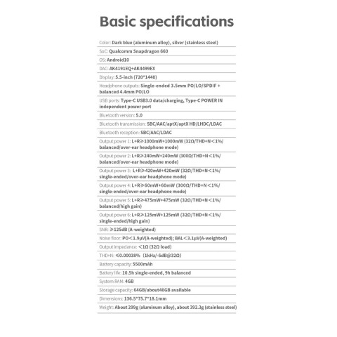 ประเภทสินค้า: DAP (เครื่องเล่นเพลงพกพา Hi-Res Lossless)