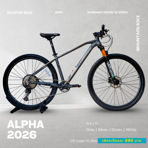 Alpha Richter จักรยานเสือภูเขา วงล้อ 29 นิ้ว ชุดขับ Shimano Deore 12 Speed ดีไซน์ซ่อนสาย เฟรมอลูฯ 6061 น้ำหนักเบา ขี่มันส์ทั้งทางเรียบและทางฝุ่น มาพร้อมชุดขับ Shimano Deore 12 สปีด เปลี่ยนเกียร์แม่น เฟืองกว้าง 11-50T ไต่ชันได้ดี และโช๊คลมปรับล็อกได้ เพิ่มความหนึบและคุมรถมั่นใจ เหมาะสำหรับคนเริ่มจริงจังกับ MTB หรือมองหาคันคุ้มสเปคแน่นในงบสบายๆ