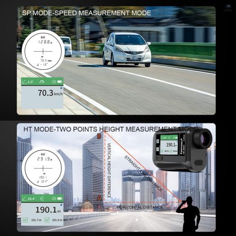 วัดได้หลายโหมด ครบในเครื่องเดียว รองรับการวัดระยะทางสายตรง ระยะทางแนวนอน/แนวตั้ง ความเร็ว ความสูงแบบสองจุด โหมดใกล้/ไกลที่สุด และโหมดที่ช่วยคำนวณระยะสำหรับกอล์ฟ
