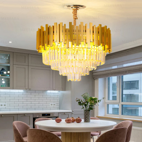 แสงหรูหราคริสตัลโคมระย้าห้องนั่งเล่นแสงหลักร้านอาหารโคมไฟห้องโถงทองไฟเพดาน โคมไฟคริสตัลดีไซน์หรู ช่วยยกระดับบรรยากาศให้ดูพรีเมียมทันที เหมาะทั้งเป็นไฟหลักและไฟตกแต่ง เพิ่มประกายแสงระยิบระยับจากคริสตัล พร้อมโทนสีทองที่เข้ากับบ้านได้หลายสไตล์