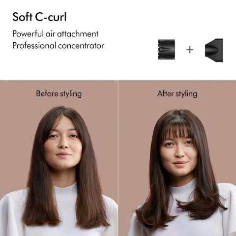 หัวเป่าลมแบบนุ่มนวล แรงลมนุ่มนวล เหมาะสำหรับเป่าผมใกล้ๆ อย่างสบาย