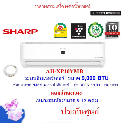 SHARP เครื่องปรับอากาศ รุ่น AH-XP10YMB อินเวอร์เตอร์ฟอกอากาศ ขนาด 9,000 BTU คอยส์ทองแดง บานสวิงอัตโนมัติ 4 ทิศทาง (ราคาเฉพาะแอร์)