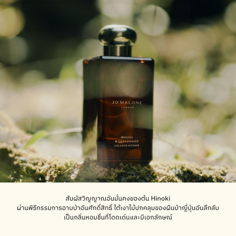 Jo Malone London - Hinoki & Cedarwood Cologne Intense น้ำหอมโคโลญจน์เข้มข้นที่พาคุณหลบหนีสู่ความสงบลึกของป่าญี่ปุ่น ถ่ายทอดเสน่ห์ของ “ฮิโนกิ” ผ่านแรงบันดาลใจจากพิธีกรรม Forest Bathing ให้ความรู้สึกสะอาด โปร่ง สดชื่น แต่ยังคงความลุ่มลึกแบบไม้หอมอย่างชัดเจน ปิดท้ายด้วยกลิ่นซีดาร์วูดที่หรูสง่า ทิ้งกลิ่นติดผิวอย่างมีเอกลักษณ์และน่าจดจำ