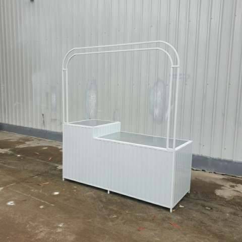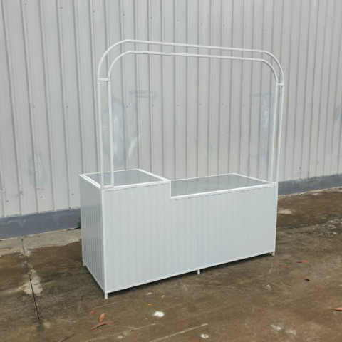เคาน์เตอร์พับประกอบโครงหน้าโค้งคู่ ขนาด 60×180×90cm ราคา 7,500.00 บาท เหมาะสำหรับงานออกบูธ จุดบริการลูกค้า เคาน์เตอร์ประชาสัมพันธ์ หรือมุมแคชเชียร์ที่ต้องการดีไซน์เรียบหรู พร้อมโครงหน้าโค้งคู่ช่วยเพิ่มมิติและความโดดเด่นให้หน้าร้าน ใช้งานได้คล่องตัวและดูแลรักษาง่าย