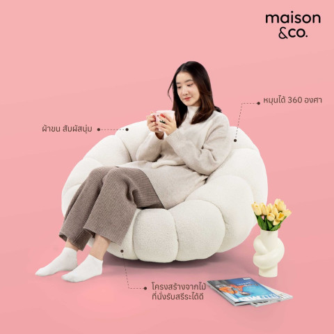 SB Design Square อาร์มแชร์ รุ่น Tempula จากแบรนด์ MAISON&CO. เติมความละมุนให้มุมพักผ่อนด้วยโทน สีขาวครีม และสัมผัส ผ้าขนนุ่ม นั่งสบายยาวนาน พร้อมฟังก์ชัน หมุนได้ 360 องศา เหมาะทั้งห้องนั่งเล่น มุมอ่านหนังสือ หรือมุมคาเฟ่ในบ้าน ให้คุณผ่อนคลายได้แบบมีสไตล์ในทุกวัน