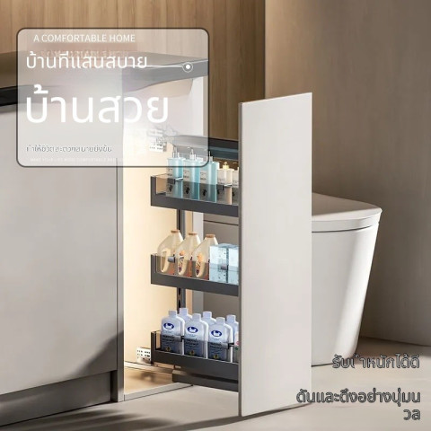 ห้องครัว ตู้มอนสเตอร์ขนาดเล็กติดกับตู้เย็น โซลูชันเพิ่มพื้นที่จัดเก็บแบบ “แคบแต่จุ” สำหรับครัวที่มีพื้นที่จำกัด ช่วยเปลี่ยนช่องว่างข้างตู้เย็นหรือข้างตู้ให้กลายเป็นตู้เก็บของแนวสูง พร้อมตะกร้าดึงลึก 4 ชั้น หยิบของง่าย มองเห็นชัด จัดระเบียบได้เป็นสัดส่วน ทั้งขนม เครื่องปรุง วัตถุดิบแห้ง และของใช้ในครัว