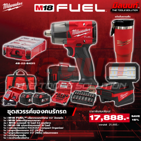 Milwaukee - ชุดสวรรค์คนรักรถ ครบเครื่องทั้งงานถอด-ขันน็อต งานเซอร์วิส และงานจัดระเบียบอุปกรณ์ในชุดเดียว เหมาะสำหรับคนรักรถ ช่างมืออาชีพ หรือสายแต่งรถที่ต้องการความแรง ความคล่องตัว และความเป็นระเบียบแบบมือโปร มาพร้อมบล็อกกระแทกไร้สาย 1/2" มิดทอร์ค + ไฟส่องทำงานแบบพกพา + ระบบจัดเก็บ PACKOUT พร้อมแบตและแท่นชาร์จ ใช้งานได้ทันที