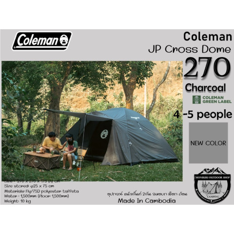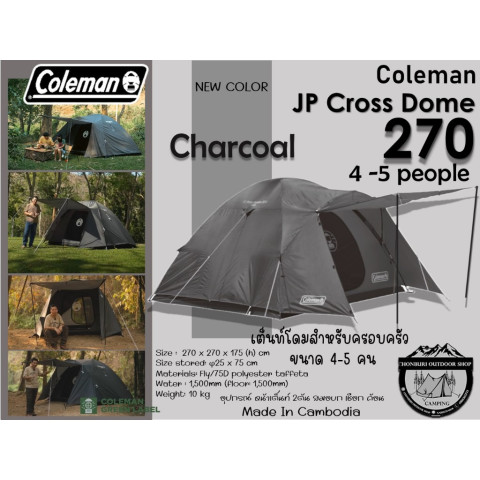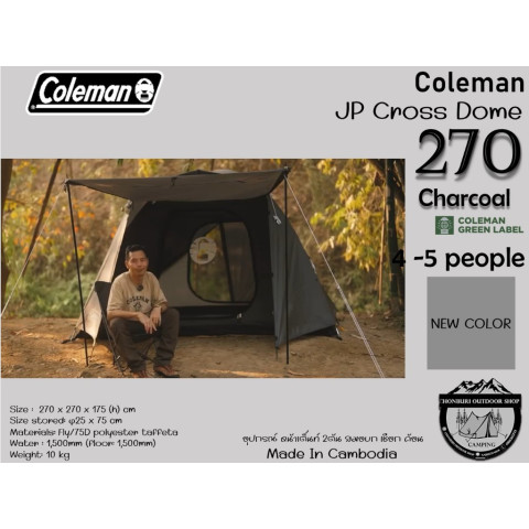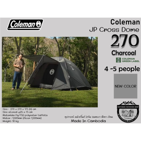 Coleman BC Cross Dome 270 เต็นท์โดมสำหรับครอบครัวขนาด 4-5 คน (Made in Cambodia) รุ่นยอดนิยมจาก Coleman Japan ออกแบบมาให้กางง่าย พื้นที่กว้างขวาง นอนได้สบายพร้อมสัมภาระ เหมาะมากสำหรับทริปแคมป์ปิ้งของครอบครัวหรือกลุ่มเพื่อนที่ต้องการเต็นท์ที่ทั้งอึด กันฝนดี และระบายอากาศเยี่ยม