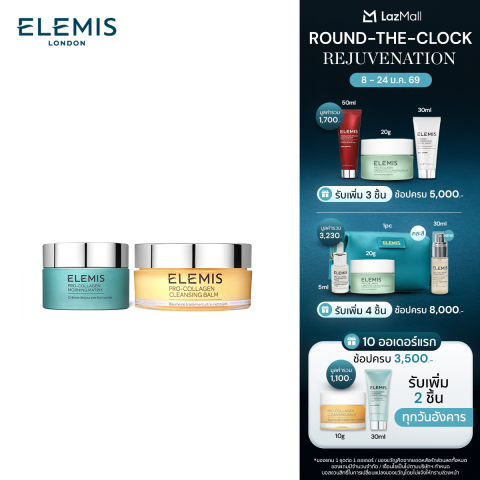 Elemis Pro-Collagen Morning & Cleansing Balm เซ็ตบำรุงและทำความสะอาดผิวระดับพรีเมียมจากเอเลมิส ที่รวม 2 ไอเท็มขายดีไว้ในชุดเดียว เพื่อผิวดูแน่นกระชับ เรียบเนียน และสะอาดหมดจดอย่างอ่อนโยน เหมาะสำหรับผู้ที่ต้องการยกระดับรูทีนดูแลผิวทั้งเช้าและก่อนนอน