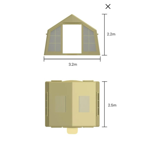 ขนาดเต็นท์: 320 x 250 x 220 ซม. (สูงสุด) / ความสูงด้านข้าง 135 ซม.