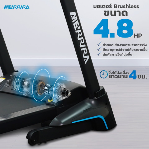 MERRIRA ลู่วิ่งไฟฟ้า 4.8 แรงม้า รุ่น MX-920 คือคู่หูการวิ่งที่ออกแบบมาเพื่อคนรักสุขภาพและสายฟิตเนสยุคใหม่ ด้วยมอเตอร์ทรงพลัง ระบบปรับชันอัตโนมัติ และการเชื่อมต่อแอปออกกำลังกายออนไลน์ ช่วยให้การวิ่งในบ้านสนุก สมจริง และท้าทายยิ่งขึ้น เหมือนได้ยกยิมมาตั้งไว้ที่บ้านของคุณ