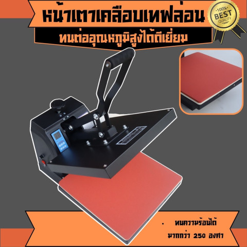 ด้วยหน้าเตาขนาด 38 x 38 ซม. ให้พื้นที่การสกรีนที่กว้าง สามารถจัดวางชิ้นงานได้สะดวก หน้าเตาเคลือบเทฟล่อน ทำให้ความร้อนกระจายสม่ำเสมอ ลดปัญหาผ้าติดหน้าเตา ทำความสะอาดง่าย ประหยัดเวลาในการดูแลรักษา พร้อมโครงสร้างแกนก้านเหล็กหนาพิเศษ ให้ความแข็งแรง ทนทาน รองรับการใช้งานต่อเนื่องยาวนานไม่บิดงอง่าย