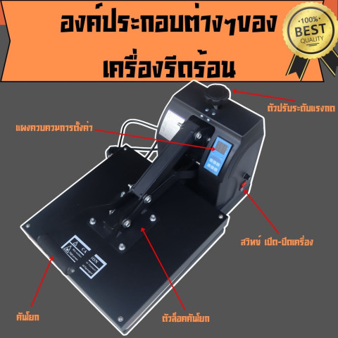 เครื่องรีดเสื้อยืด สกรีนกระเป๋าผ้า Heat Transfer เครื่องกดความร้อน รุ่นคันโยกก้านเดี่ยว ดีไซน์แข็งแรง ใช้งานง่าย เหมาะสำหรับทั้งมือใหม่และมืออาชีพ ช่วยให้การสกรีนเสื้อ หมวก กระเป๋าผ้า ปลอกหมอน หน้ากากผ้า และงานผ้าอื่น ๆ ทำได้อย่างแม่นยำ เรียบเนียน และติดทนนาน รองรับงานผลิตทั้งแบบชิ้นเดียวและแบบจำนวนมาก ใช้งานได้ในร้านสกรีน ร้านของที่ระลึก ร้านออนไลน์ หรือทำเป็นงานเสริมที่บ้านได้สบาย ๆ