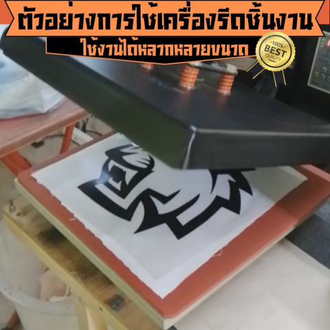 ยกคันโยกขึ้น นำฟิล์มหรืองานสกรีนออก ตรวจสอบงานที่ได้เรียบเนียนและติดแน่น พร้อมแพ็กส่งลูกค้าได้ทันที