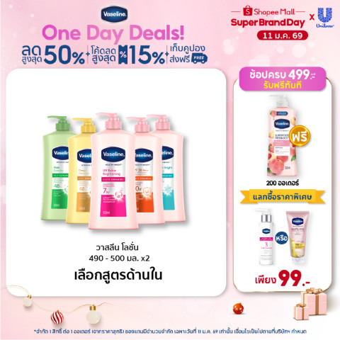 มอบผิวกระจ่างใส สุขภาพดี เรียบเนียนทั่วเรือนร่างด้วย โลชั่นบำรุงผิวกาย วาสลีน เฮลธี้ ไบรท์ ยูวี เอ็กซ์ตร้า ไบร์ทเทนนิ่ง 470-480 มล. (เลือกสูตรด้านใน) โลชั่นบำรุงผิวที่ช่วยฟื้นบำรุงให้ผิวดูกระจ่างใสอย่างเป็นธรรมชาติ พร้อมปกป้องผิวจากรังสียูวีในทุกวัน เหมาะสำหรับผู้ที่ต้องการดูแลผิวให้ดูกระจ่างใส เปล่งปลั่ง และชุ่มชื่นยาวนาน
