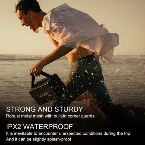 ตัวเครื่องดีไซน์สไตล์วินเทจสุดคลาสสิก ผสานความโมเดิร์น ใช้วัสดุคุณภาพสูง แข็งแรง ทนทาน พร้อมหูหิ้วแนวแอมป์กีตาร์ซิกเนเจอร์ของ Marshall พกสะดวกทุกการเดินทาง มาพร้อมมาตรฐานกันน้ำกระเด็น IPX2 ไม่ต้องกังวลละอองฝนหรือน้ำหกเล็กน้อย เหมาะทั้งใช้ที่บ้าน ที่ทำงาน หรือกลางแจ้ง