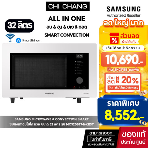 [ราคาพิเศษ] SAMSUNG Smart Convection เตาอบไมโครเวฟอเนกประสงค์ รุ่น MC32DB7746KEST ความจุ 32 ลิตร สีขาว Clean White ดีไซน์มินิมอลหรูหรา ที่รวมทุกฟังก์ชันการทำอาหารไว้ในเครื่องเดียว ทั้งอบ อุ่น ย่าง ทอดแบบไร้น้ำมัน นึ่ง อบลมร้อน ทำขนม และหมักแป้งหรือโยเกิร์ตได้อย่างสะดวกสบาย ตอบโจทย์คนรักการทำอาหารและสายเฮลท์ตี้โดยเฉพาะ