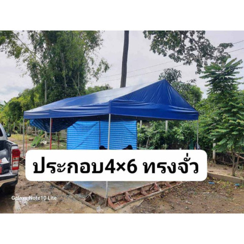 เต็นท์ประกอบ 4×6 ทรงจั่วผ้ายูวี ดีไซน์สวย ใช้งานเอนกประสงค์ ทั้งงานพิธี งานบวช งานแต่ง เปิดร้านค้า ตลาดนัด หรืองานอีเวนต์ต่างๆ พร้อมบริการติดตั้งในเขตกรุงเทพฯ ในราคาเพียง 8,700 บาท คุ้มค่า ทนทาน ใช้งานได้ยาวนาน
