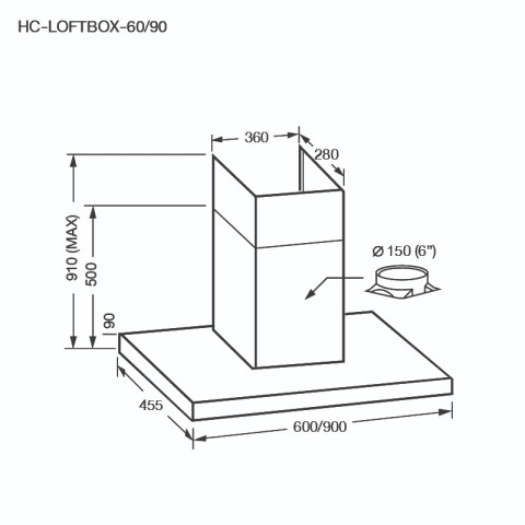 เครื่องดูดควันติดผนังรุ่น HC-LOFTBOX-60 มาพร้อมดีไซน์กระโจมติดผนัง สไตล์อินดัสเทรียล ลอฟท์ ขนาดกะทัดรัด 60 ซม. เคลือบโครงเครื่องด้วยสีดำด้านสุดพรีเมียม ผสานแผงควบคุมกระจกสีดำสวยหรู เข้ากับเคาน์เตอร์ครัวและผนังได้ลงตัว เพิ่มลุคมืออาชีพให้กับห้องครัวของคุณทันทีที่ติดตั้ง