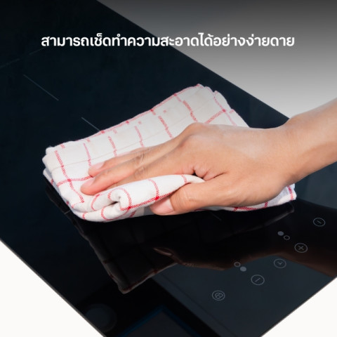 หน้าเตาเรียบต่อเนื่อง ไม่มีซอกมุม สะดวกต่อการเช็ดคราบหลังใช้งาน