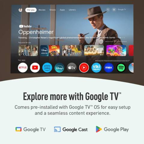ระบบ Google TV™ ในตัว เข้าถึงหนัง ซีรีส์ และรายการทีวีได้เป็นพัน ๆ เรื่องจาก Google Play Store