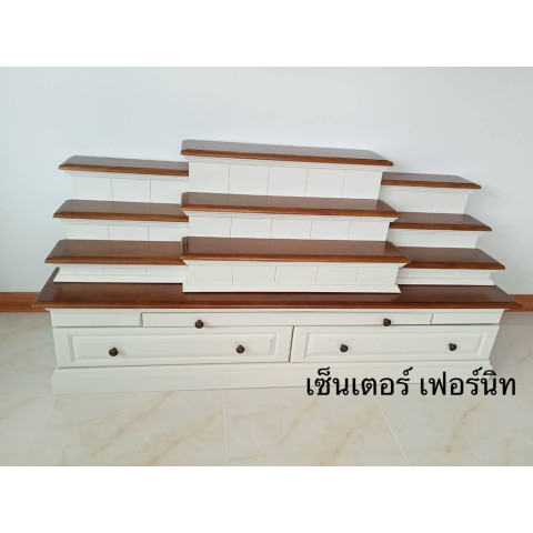 งานไม้จริงทั้งชุด แข็งแรง มั่นคง รองรับน้ำหนักองค์พระและของตั้งบูชาได้ดี