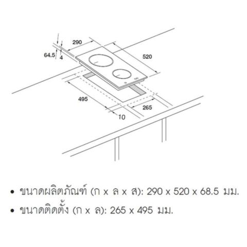 ขนาดหน้ากว้าง: ประมาณ 60 ซม. เหมาะสำหรับติดคู่กับเตา 2 หัว