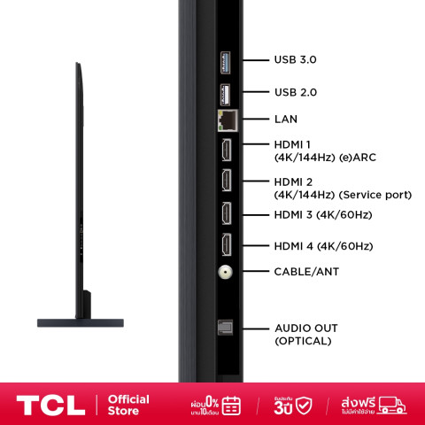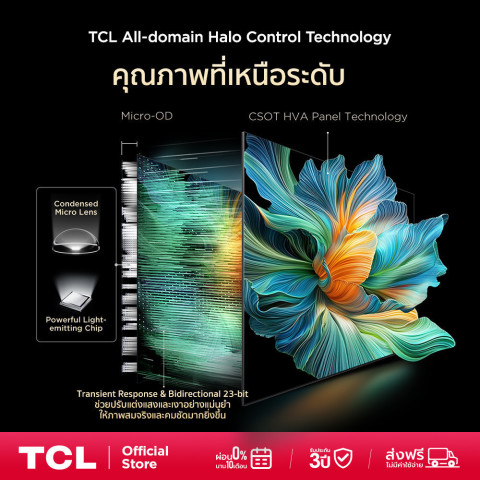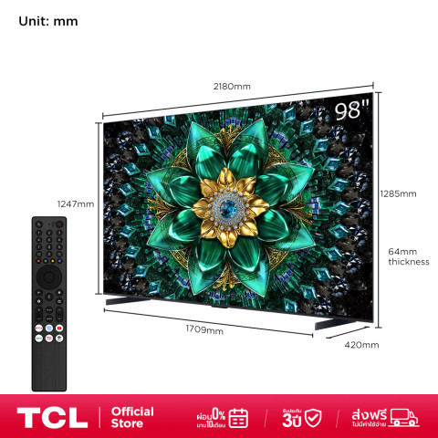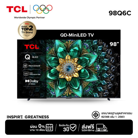 [NEW 2025] TCL ทีวี 98 นิ้ว 4K Mini QLED Google TV รุ่น 98Q6C/98C6K คือทีวีจอยักษ์ระดับเรือธงที่ยกประสบการณ์ความบันเทิงภายในบ้านของคุณไปอีกขั้น ด้วยเทคโนโลยี QD-Mini LED รุ่นล่าสุด ผสานพาเนล Matte HVA คุณจะได้ภาพที่คมชัด สีสันจัดเต็ม รายละเอียดเหนือระดับ พร้อมดีไซน์บางเฉียบที่หรูหราและลงตัวกับห้องขนาดใหญ่ ทั้งห้องนั่งเล่น ห้องโฮมเธียเตอร์ หรือห้องประชุมระดับพรีเมียม
