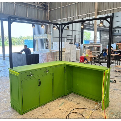 เปลี่ยนทุกมุมให้กลายเป็นหน้าร้านสวยด้วย 99HomeStore คีออสสำเร็จรูป (ไม่รวมงานอักษร) รุ่น ก30/50*ย160/160*ส80/200 ชุดคีออสแบบ 2 ตัวต่อดีไซน์โมเดิร์น โทนเขียว-ดำสุดโดดเด่น มาพร้อมไฟส่องสว่างครบชุด เหมาะสำหรับเปิดร้านกาแฟ ร้านชา ร้านเครื่องดื่ม สแน็กบาร์ มินิบาร์ หรือเคาน์เตอร์ขายหน้าร้านในห้างและตลาดต่าง ๆ ติดตั้งง่าย ใช้งานสะดวก พร้อมให้คุณเริ่มต้นธุรกิจได้ทันที