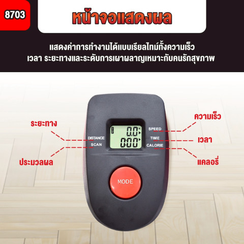 หน้าจอ LCD แสดง เวลา ความเร็ว ระยะทาง และแคลอรี่