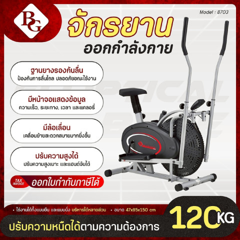 เปลี่ยนมุมบ้านให้เป็นฟิตเนสส่วนตัวด้วย (แถมฟรียางยืดโยคะ) BG จักรยานออกกำลังกาย รุ่น 8703 เครื่องเดินวงรี 2 IN 1 Elliptical เครื่องเดียวที่ให้คุณได้ทั้งการปั่นจักรยานและเดินวงรี ช่วยเผาผลาญแคลอรี่ เสริมสร้างความแข็งแรงของหัวใจและระบบไหลเวียนโลหิต พร้อมออกกำลังกายกล้ามเนื้อได้ทั่วทั้งร่างกาย เหมาะสำหรับคนที่ไม่มีเวลาไปฟิตเนส แต่อยากดูแลสุขภาพอย่างจริงจัง